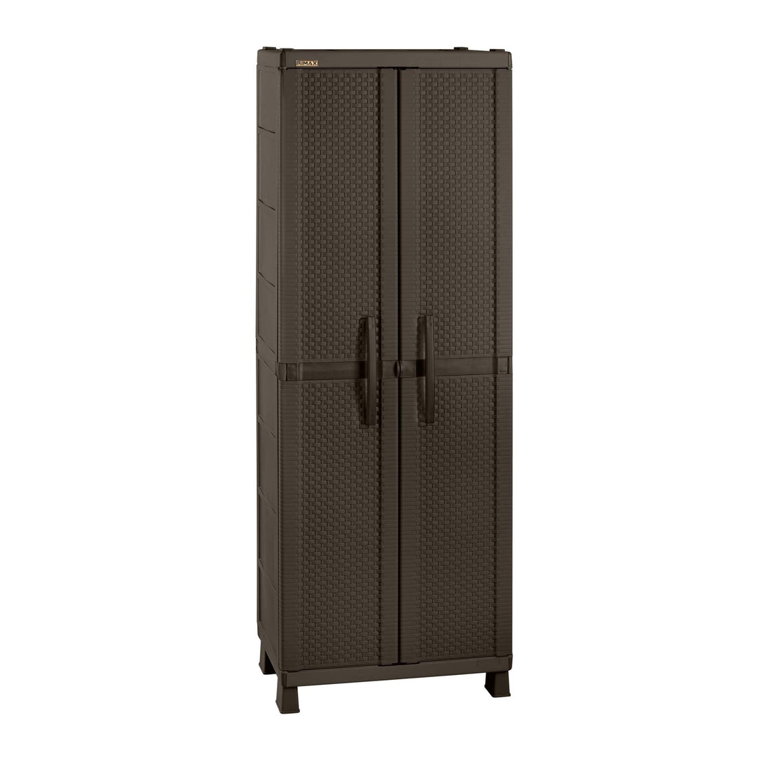 Armario Grande con apariencia Rattan. Cuatro entrepaños ajustables que resisten hasta 25 Kg cada uno. Fácil de armar, mover y limpiar. Con la resistencia y beneficios del plástico. Excelente capacidad interior, con orificio para uso del candado para mayor seguridad. Apariencia artesanal y elegante que acompaña tus espacios de la mejor manera. Beneficios Manijas verticales. Mejor agarre y diseño. 4 Entrepaños regulables. Resiste hasta 25 kg por entrepaño. Fácil de mover. Fácil de armar. Amplio espacio de almacenamiento para múltiples necesidades. Diseño elegante que imita el rattan, dando un toque natural. Fabricado en materiales resistentes y fáciles de mantener. Versátil para uso en distintas áreas del hogar. Aporta un estilo sofisticado a cualquier decoración. Ideal para organizar ropa y objetos grandes y pequeños.