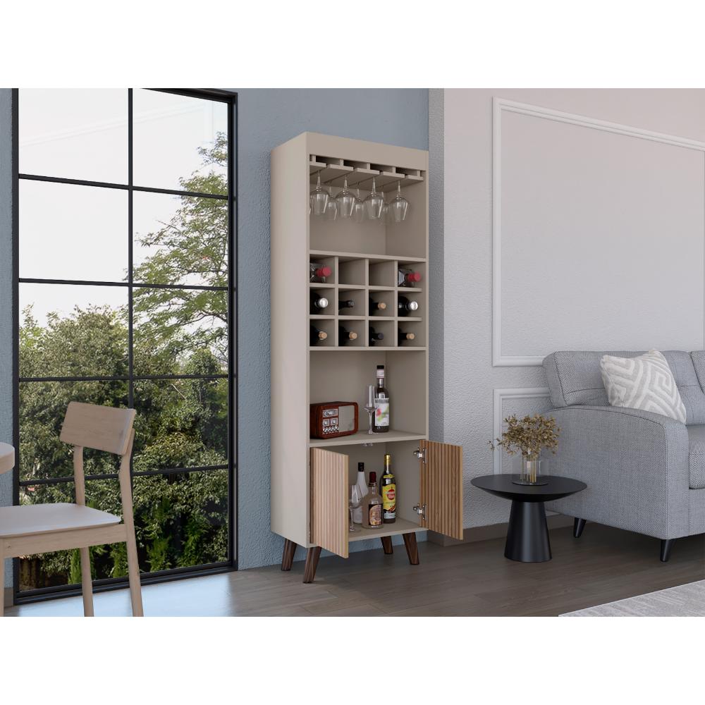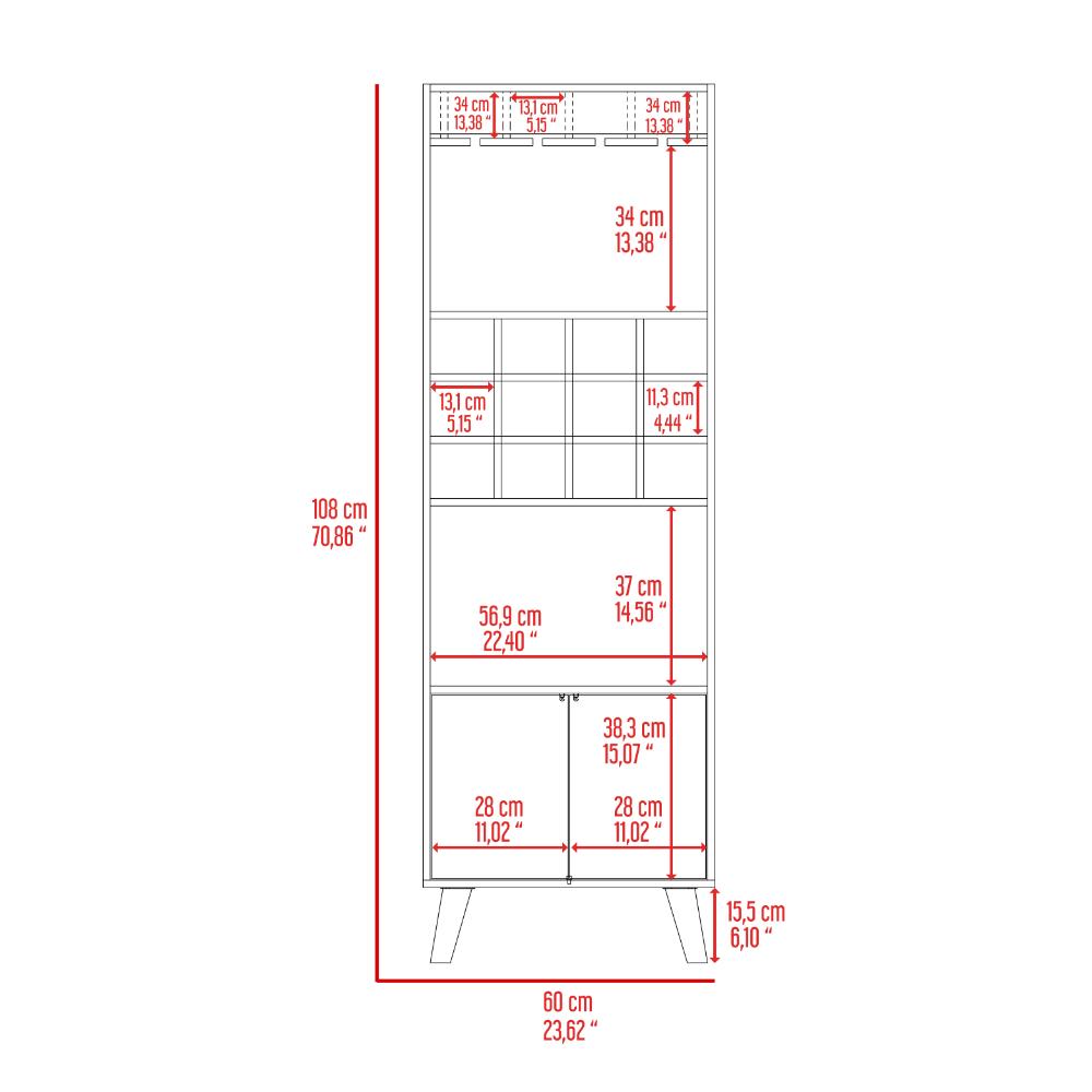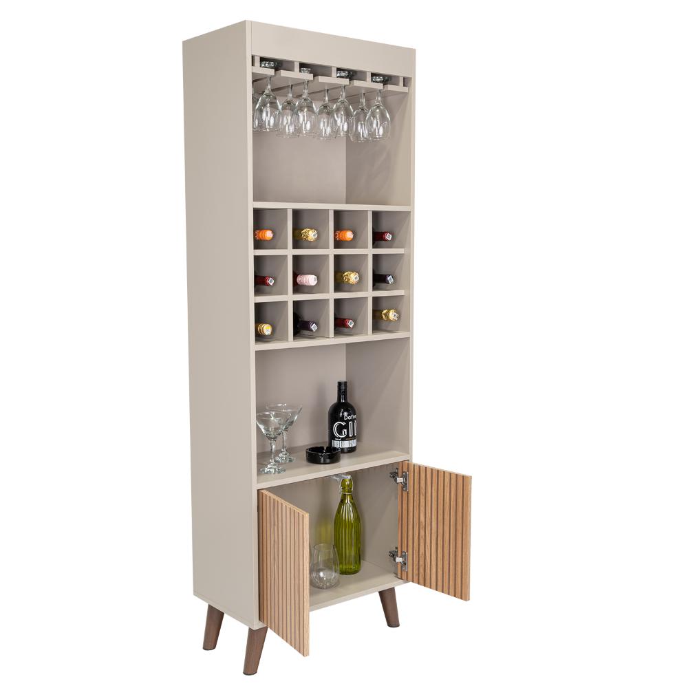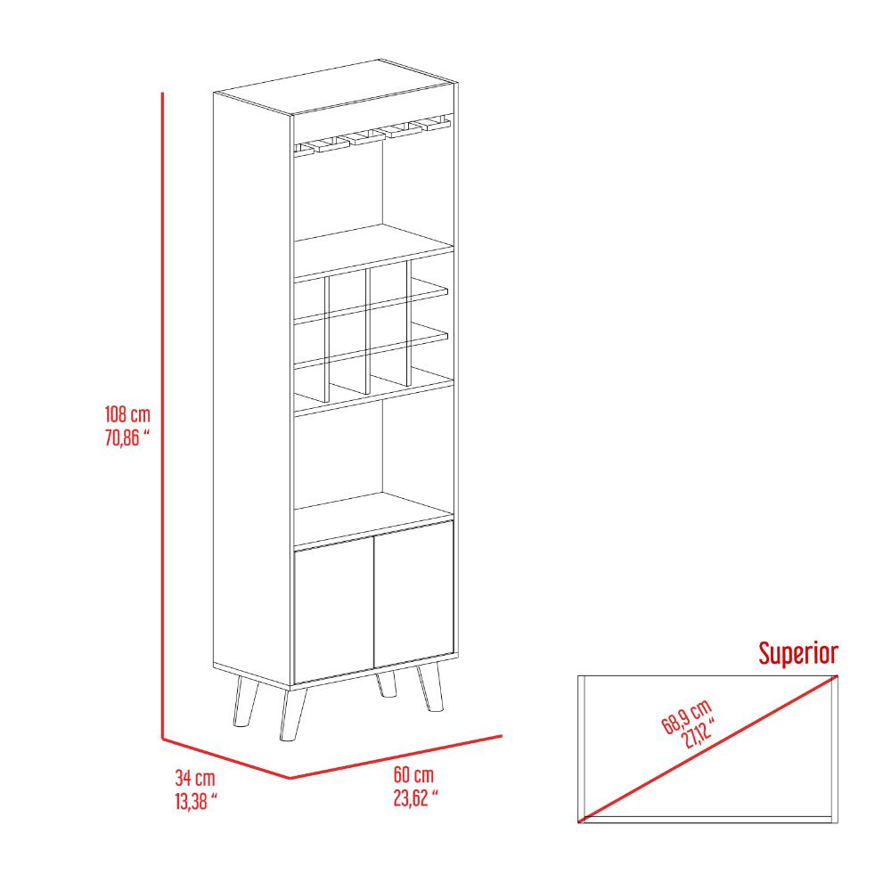 Bar Mirabella, Cocoa, con Dos Puertas Abatibles y Espacio para Almacenar Copas
