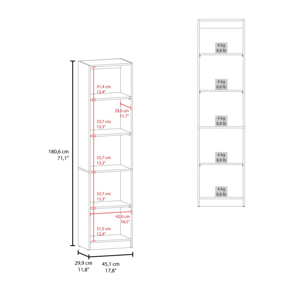 Biblioteca, con cinco entrepaños para ubicar libros y elementos decorativos.