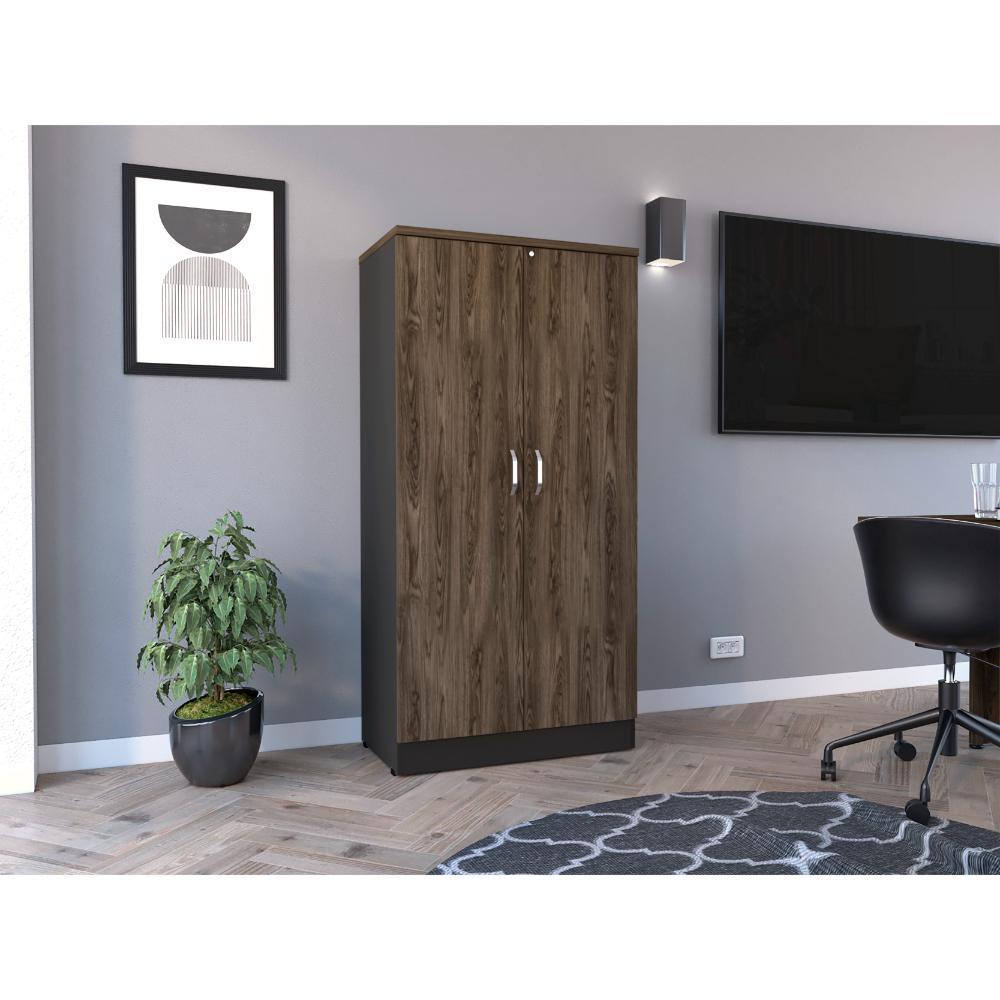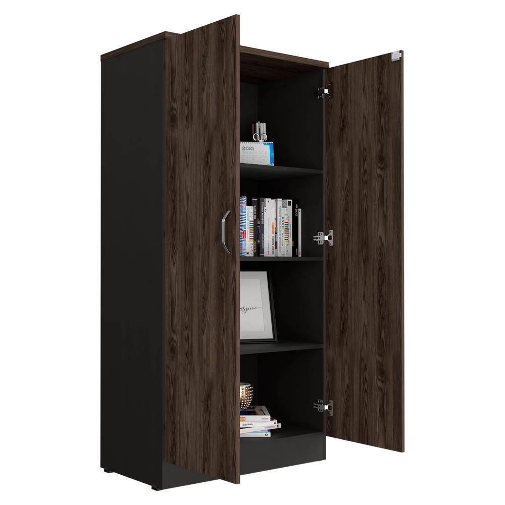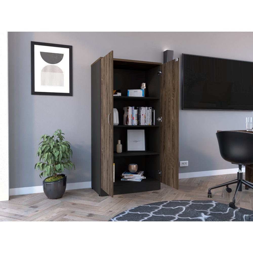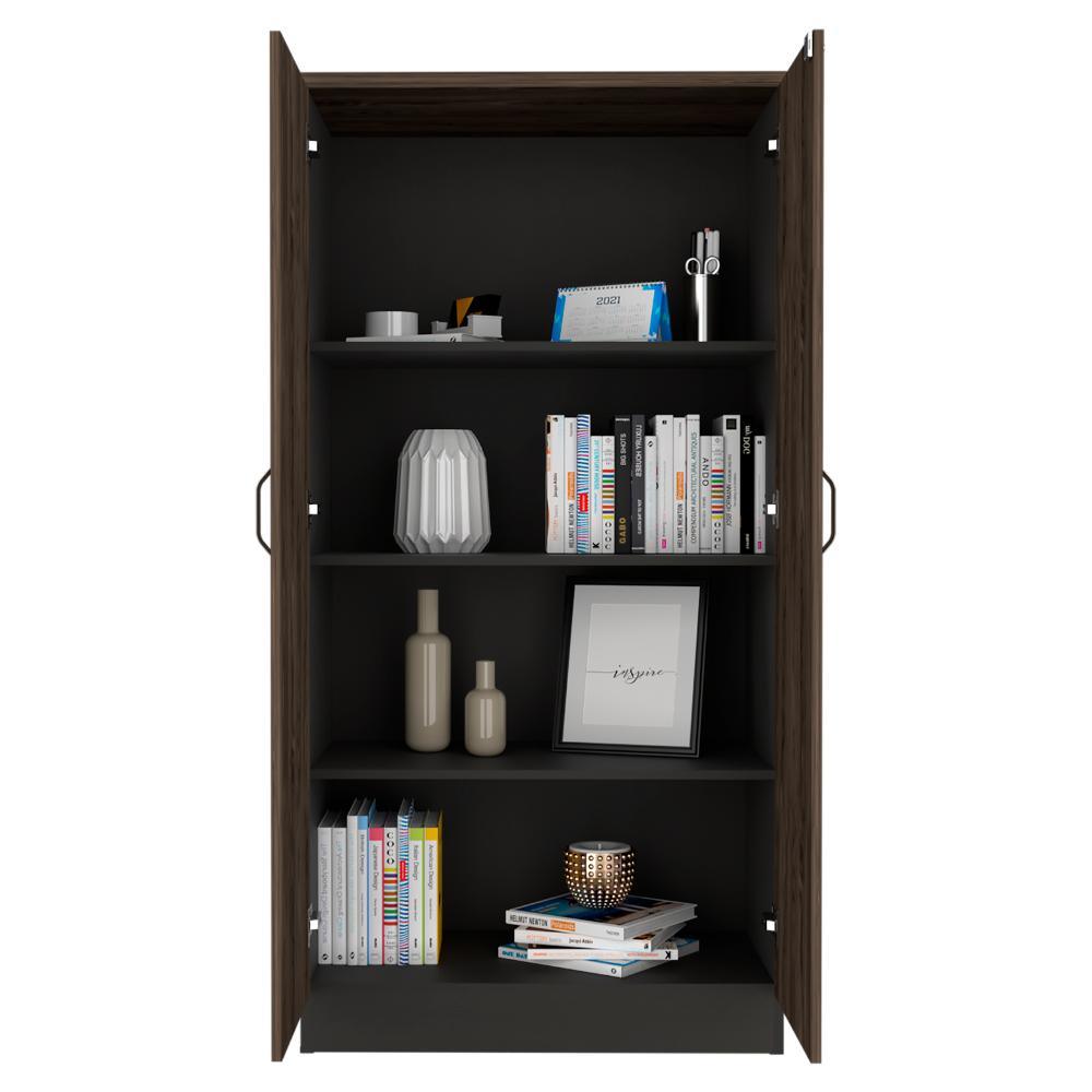 Biblioteca Home, Chocolate y Wengue, con Cinco Entrepaños y Dos Puertas Abatibles