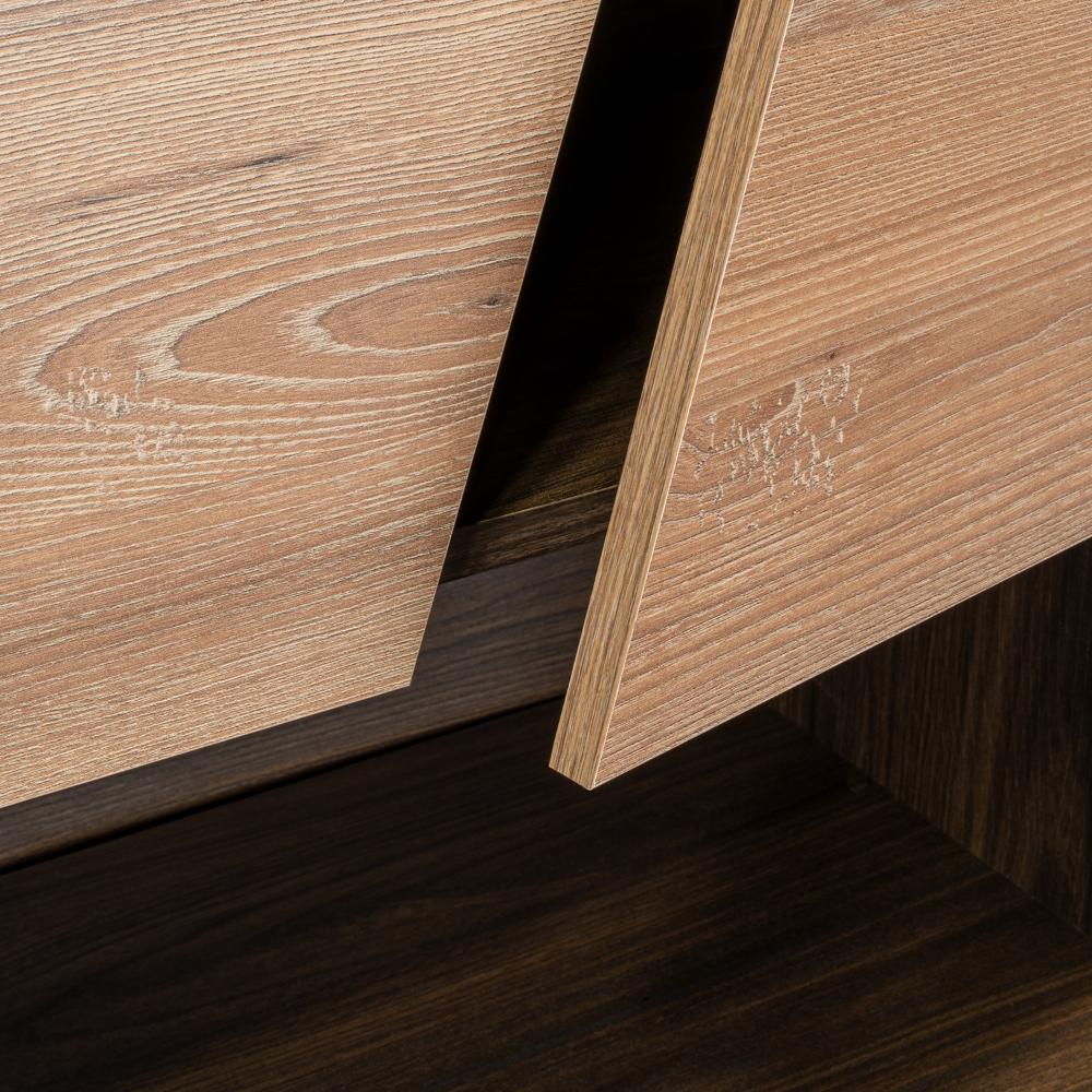 Elaborado en Madera aglomerada MDP, recubierta con láminas melamínicas de excelente calidad, en color Miel y Caoba.
