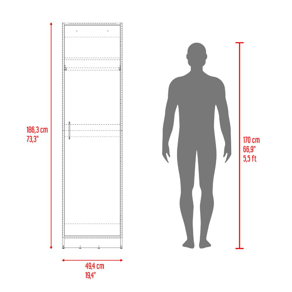 Closet, amplio espacio, entrepaño para organizar, un tubo de acero cromado para colgar, una manija y de facil armado.