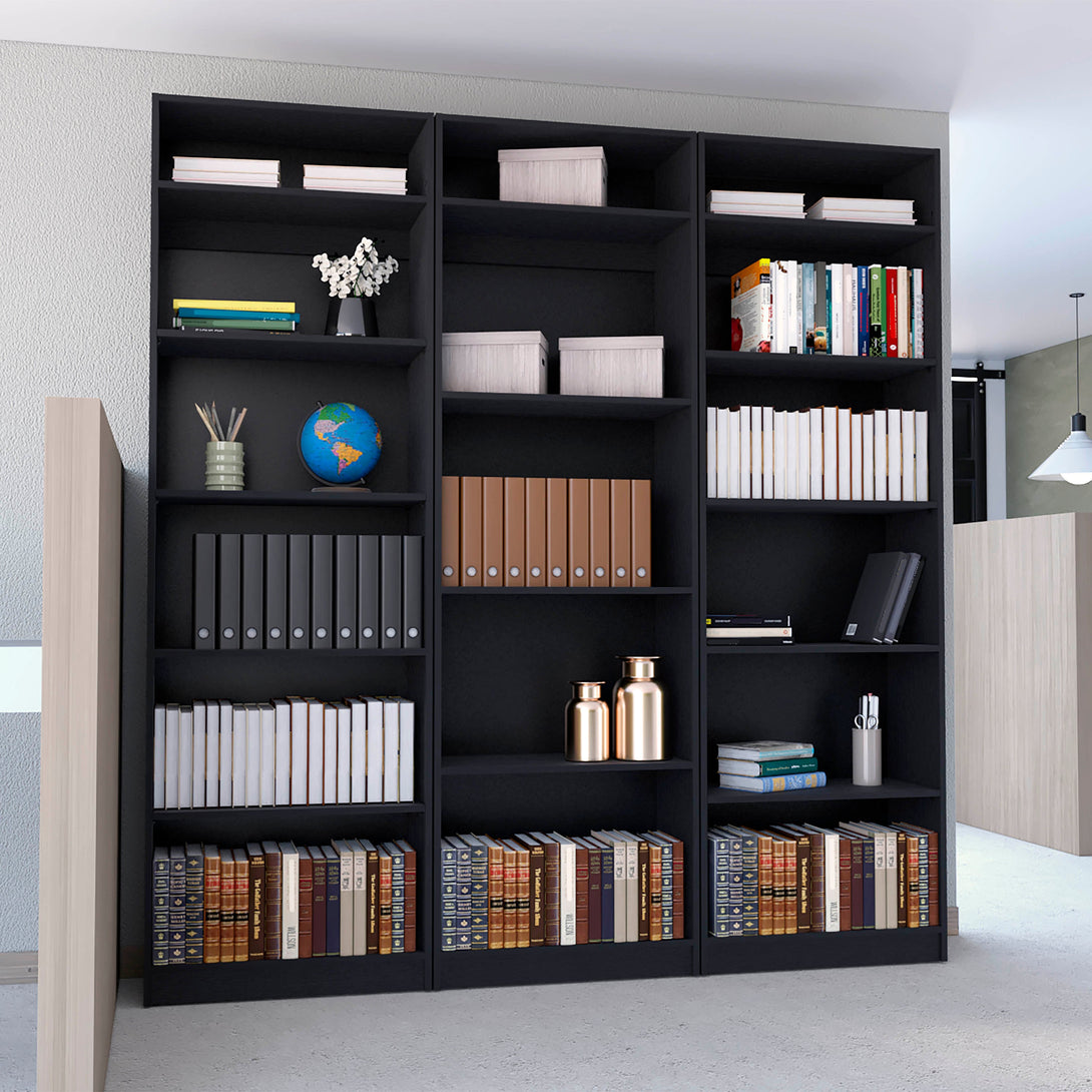Combo de Bibliotecas Home, Wengue, Incluye Tres Bibliotecas sin puertas y Tres Complementos
