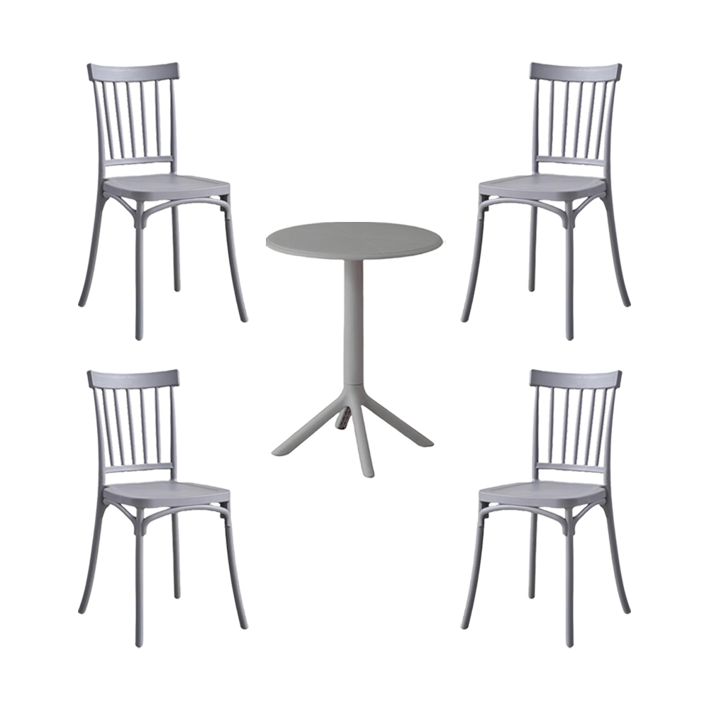 Combo Eclipse, Incluye Mesa Redonda y 4 Sillas en Color Gris Oscuro