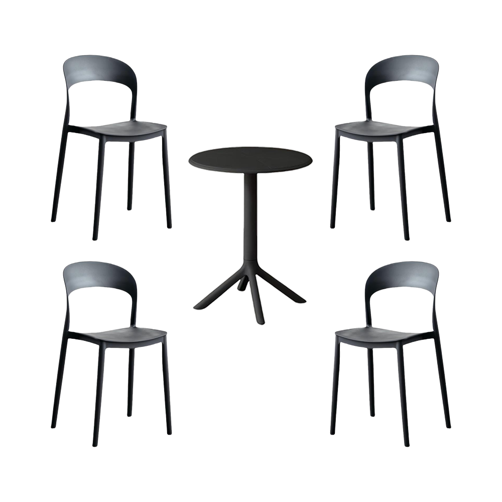 Combo Opalo, Incluye Mesa Redonda y 4 Sillas en Color Negro