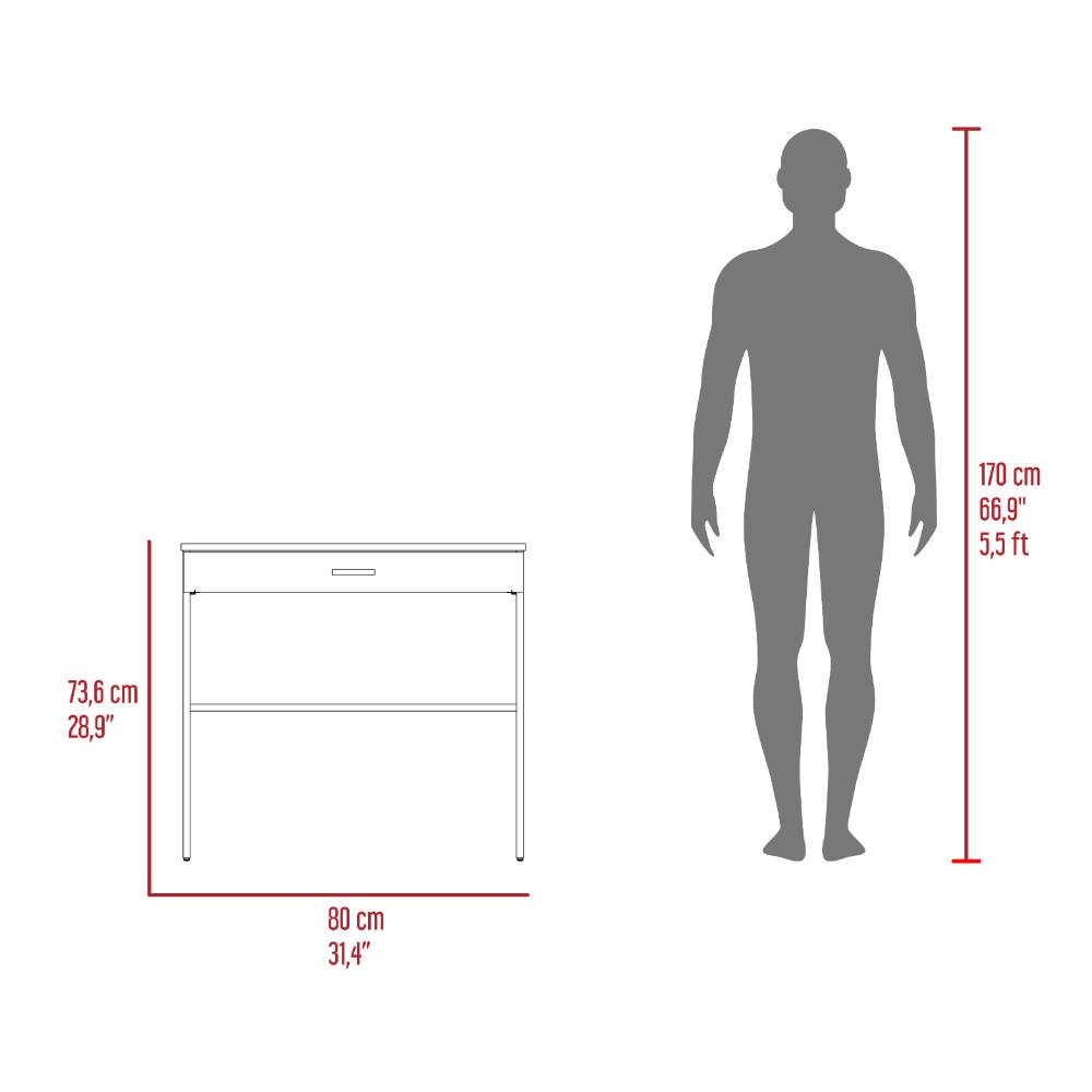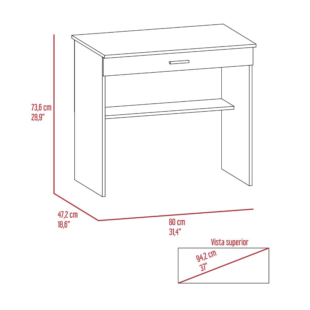 Escritorio 80 Cajon, Roble Gris y Blanco