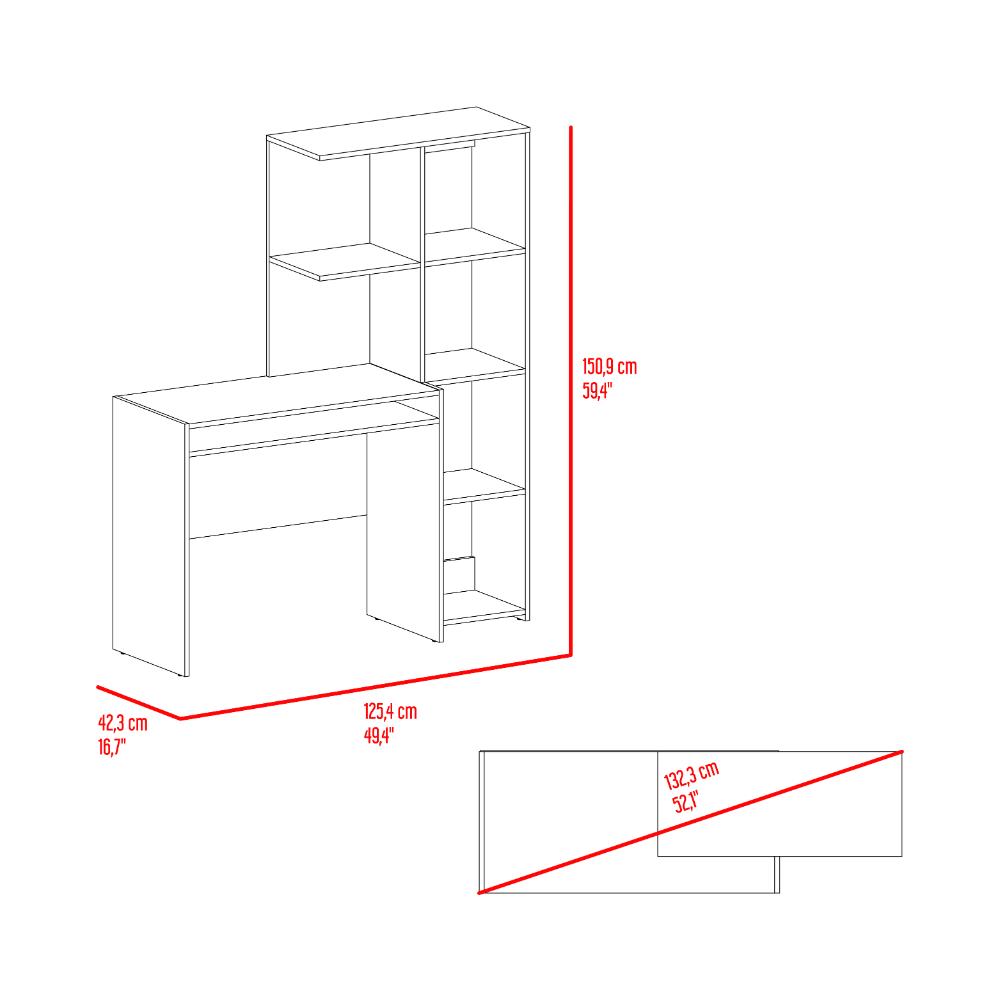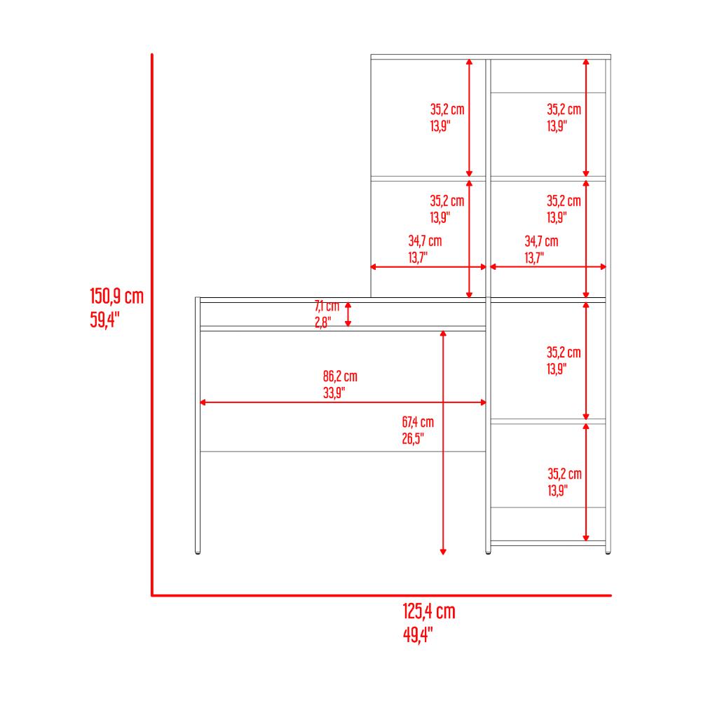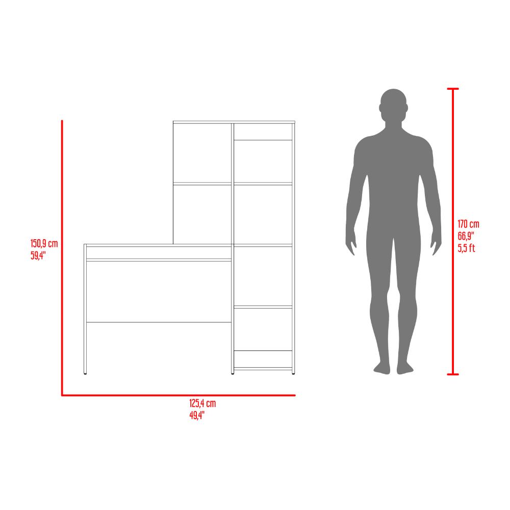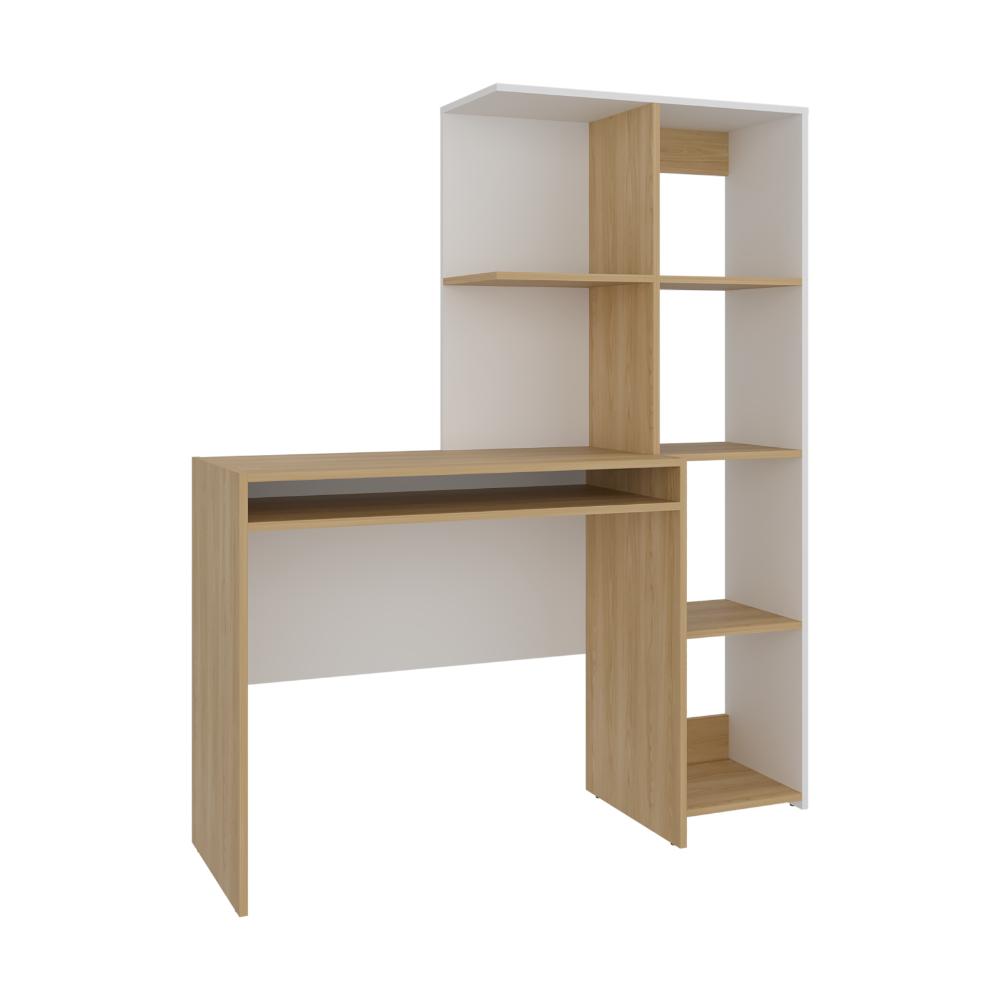 Escritorio Biblioteca Alister, Blanco Duqueza y Fresno Europeo, con multiples entrepaños y superficies para ubicar objetos