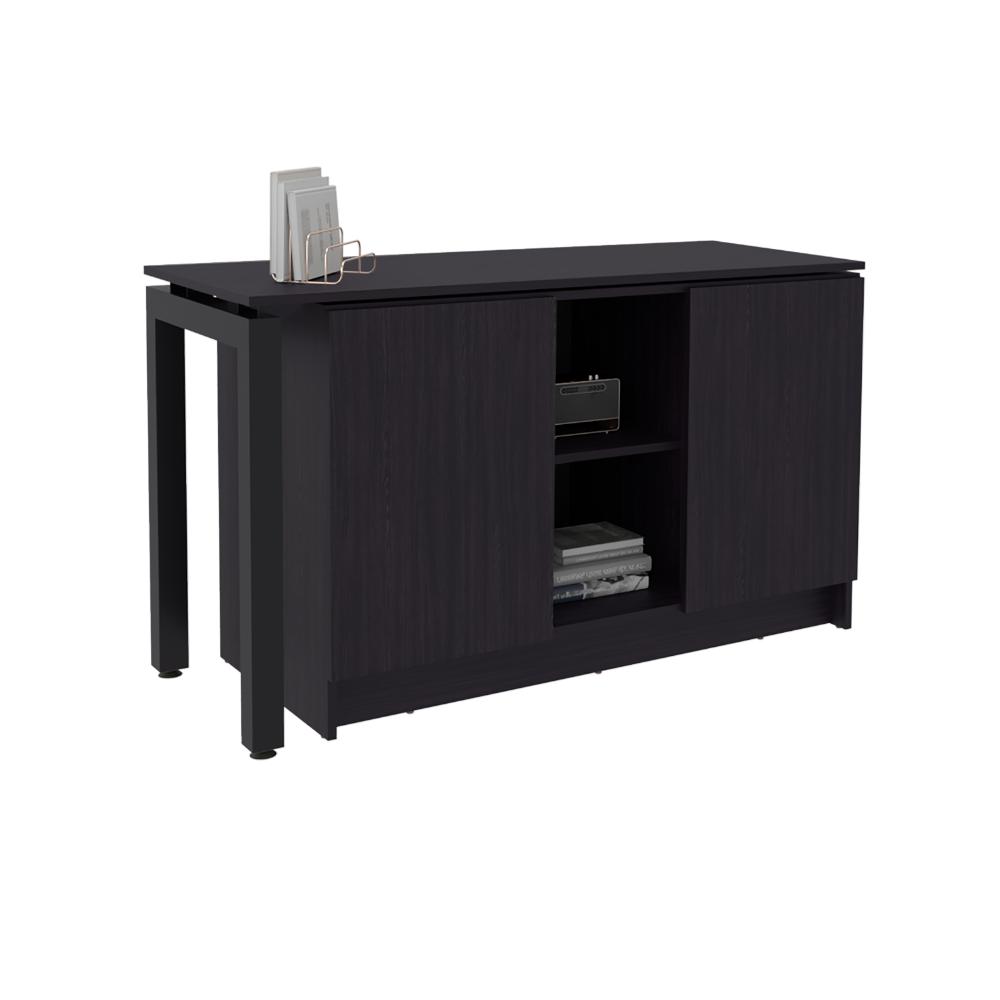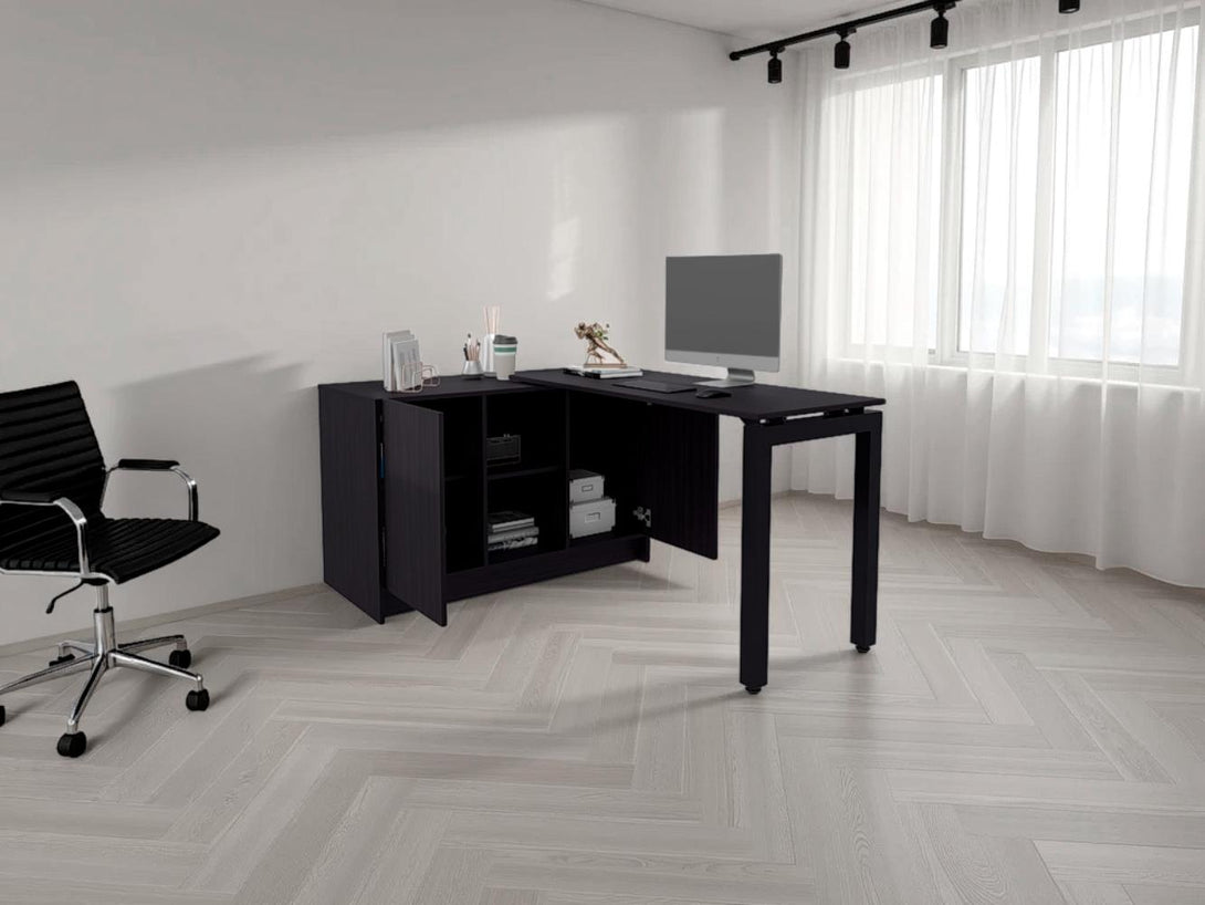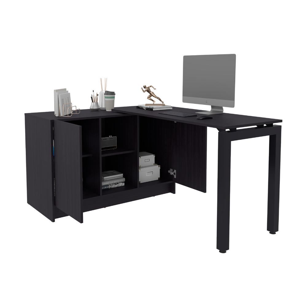 Escritorio, con 2 puertas abatibles, gran superficie de trabajo, multiples espacios para ubicar objeto.