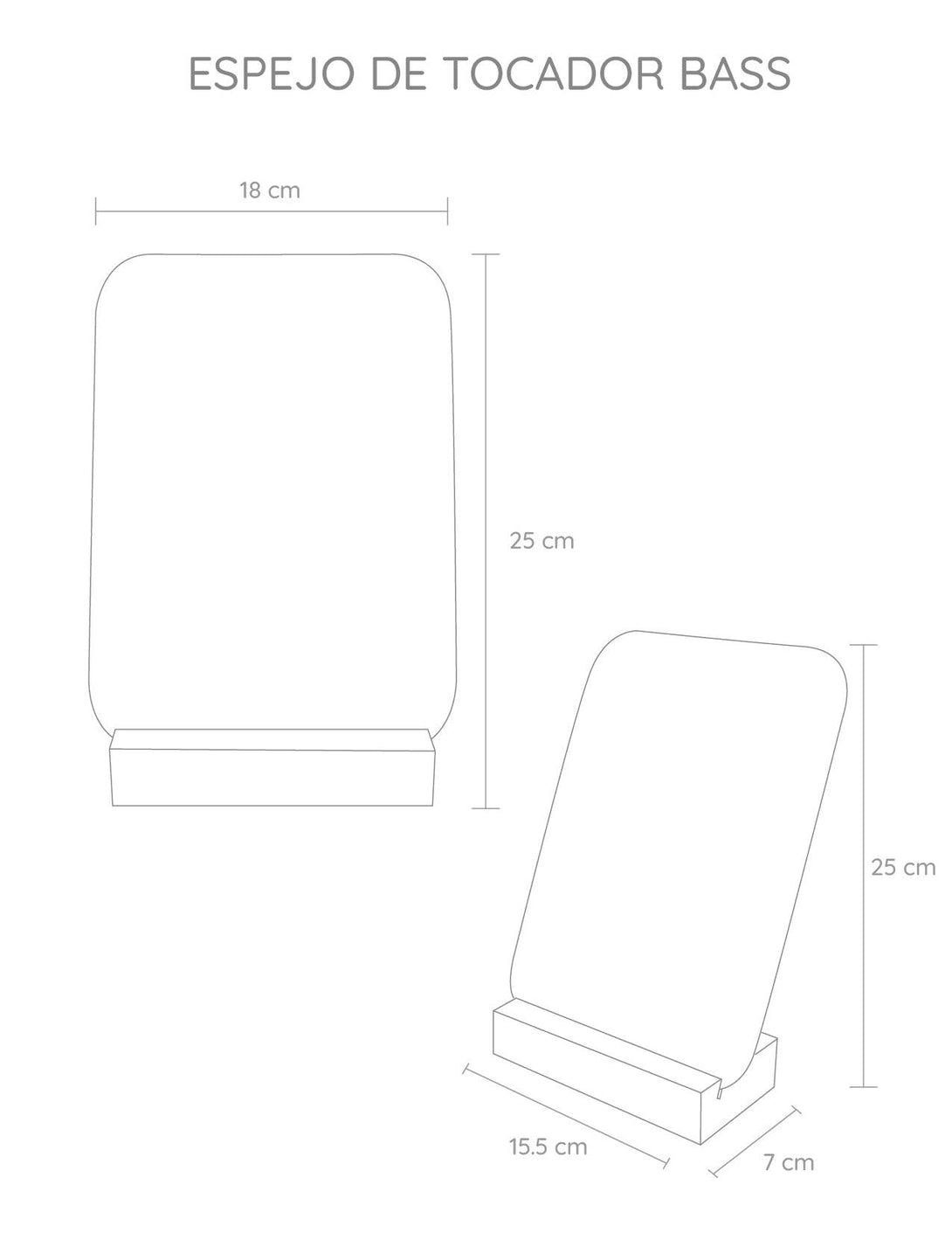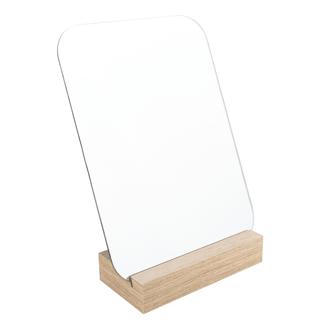 Espejo de tocador tocador mediano recto con bordes redondeados con base madera clara en MDP 30mm.
