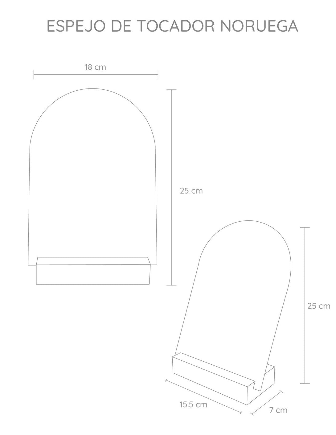 Espejo de Tocador mediano rectangular con extremo superior semicircular con base en madera clara MDP 30mm