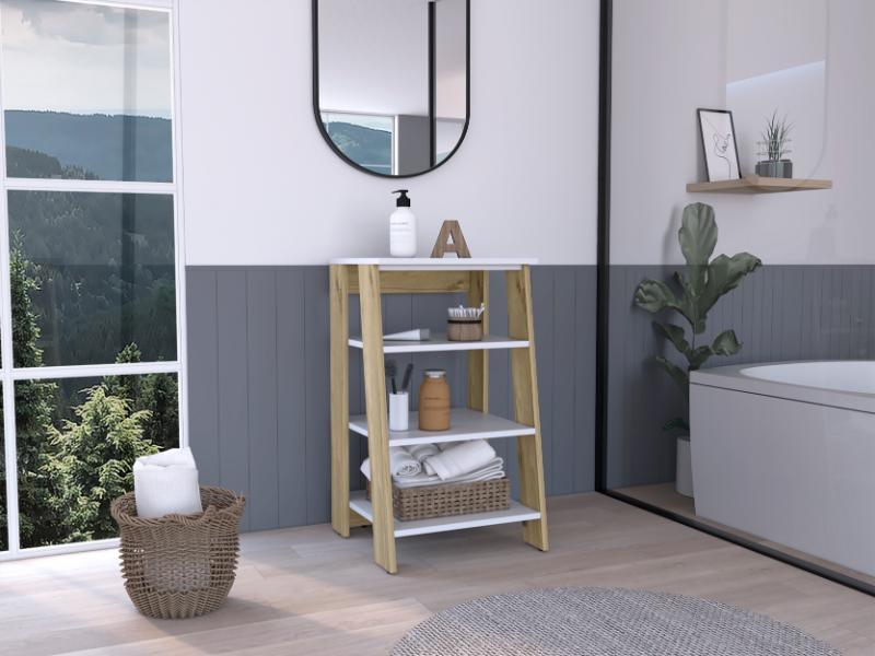 Gabinete de Baño Aqua 3 Pequeño, Café Claro y Blanco, Con Variedad De Entrepaños