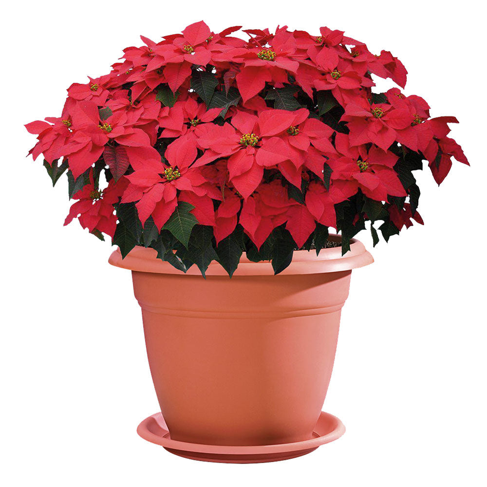 Matera Redonda de 60cm con plato. Es plástica y tiene aditivo de protector UV para mayor duración y resistencia al sol.