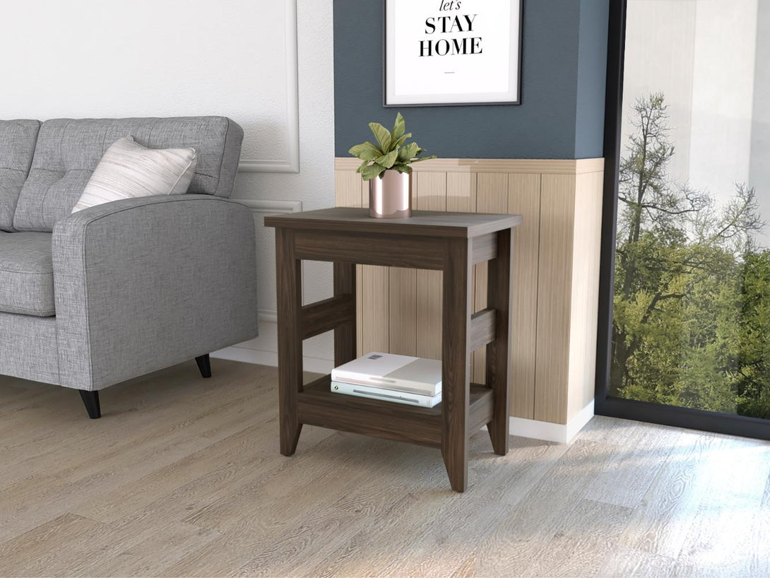 Mesa Auxiliar, con espacio para objetos decorativos, un entrepaño y es de facil instalación.