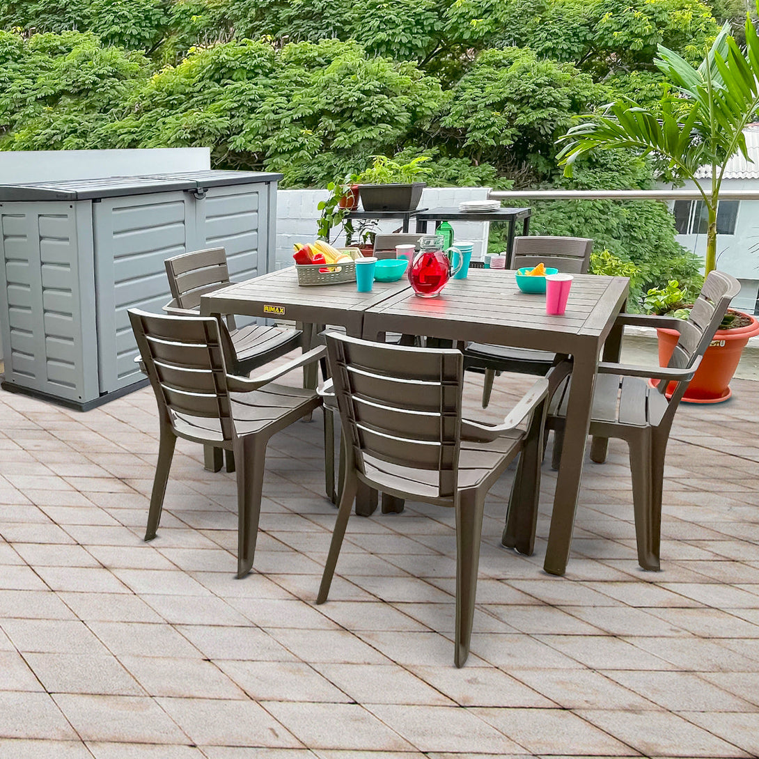 La Mesa Barú de apariencia madera es simple y elegante, inspirada en una textura natural que transmite tranquilidad, relajación y armonía, lo que la hace que sea el complemente ideal para el espacio de tu casa, finca u oficina. La Mesa Barú color gris hielo está fabricada en resina, un material resistente al agua y que permite una mayor duración del producto.