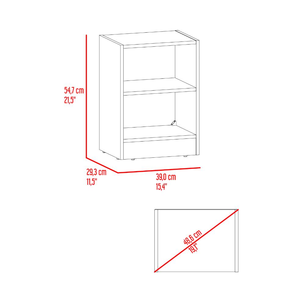 Mesa de Noche, con compartimento para ubicar objetos, un entrepaño y es de facil armado