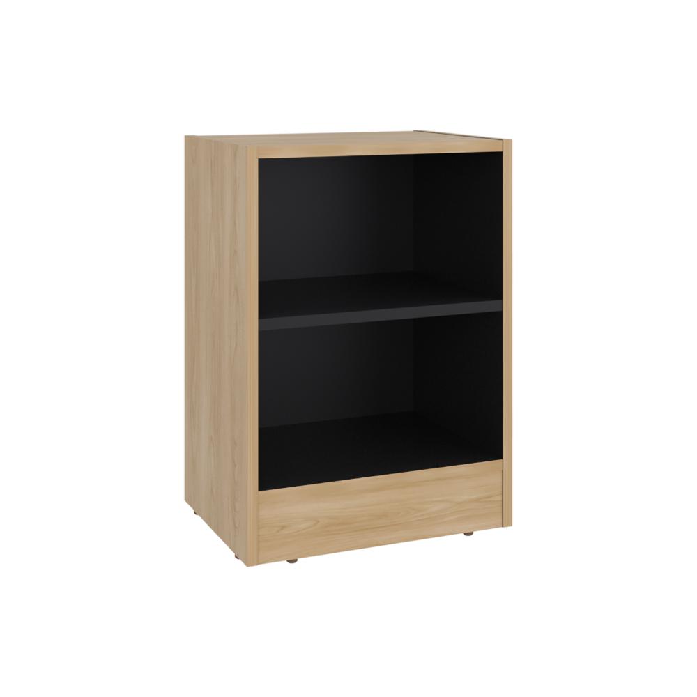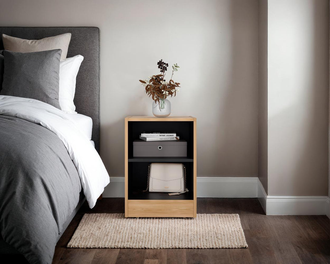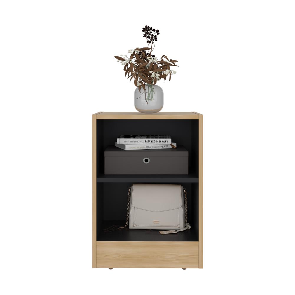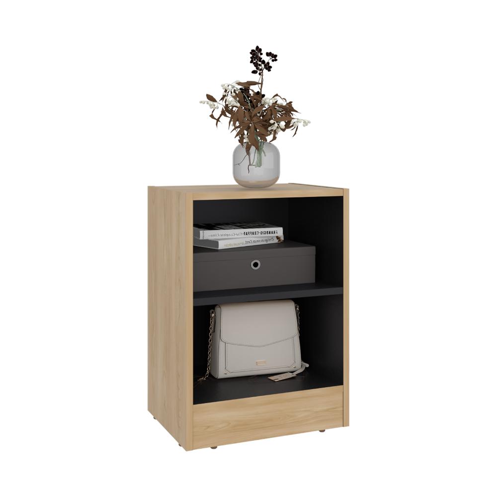Mesa de Noche Cley, Fresno Europeo y Wengue, con compartimento para ubicar objetos