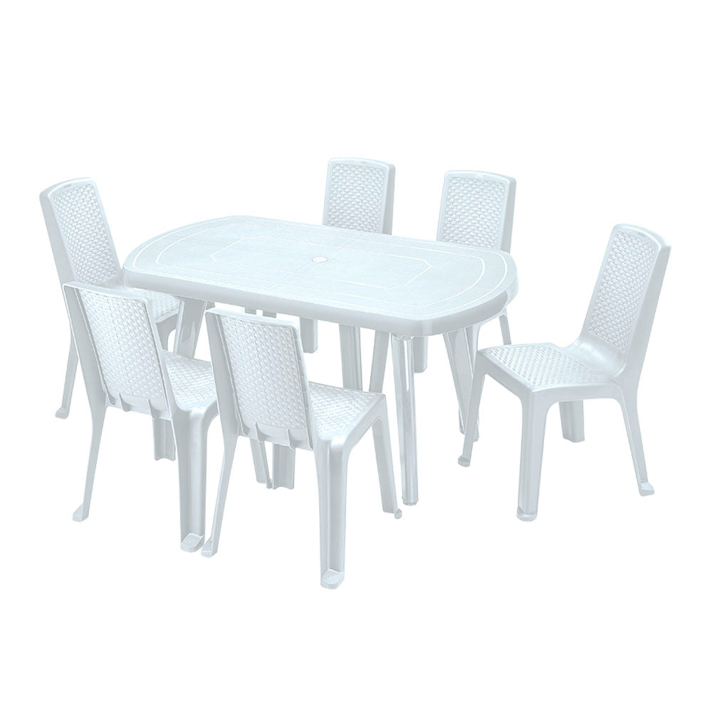 Mesa de tamaño familiar ideal para 6 puestos, larga, resistente, fácil de armar y de limpiar. Con filtro UV para uso en exteriores e interiores. Úsala con 6 sillas como comedor principal o auxiliar. Un producto diferenciado y estable. Diseño clásico que combina con los diversos estilos del hogar.