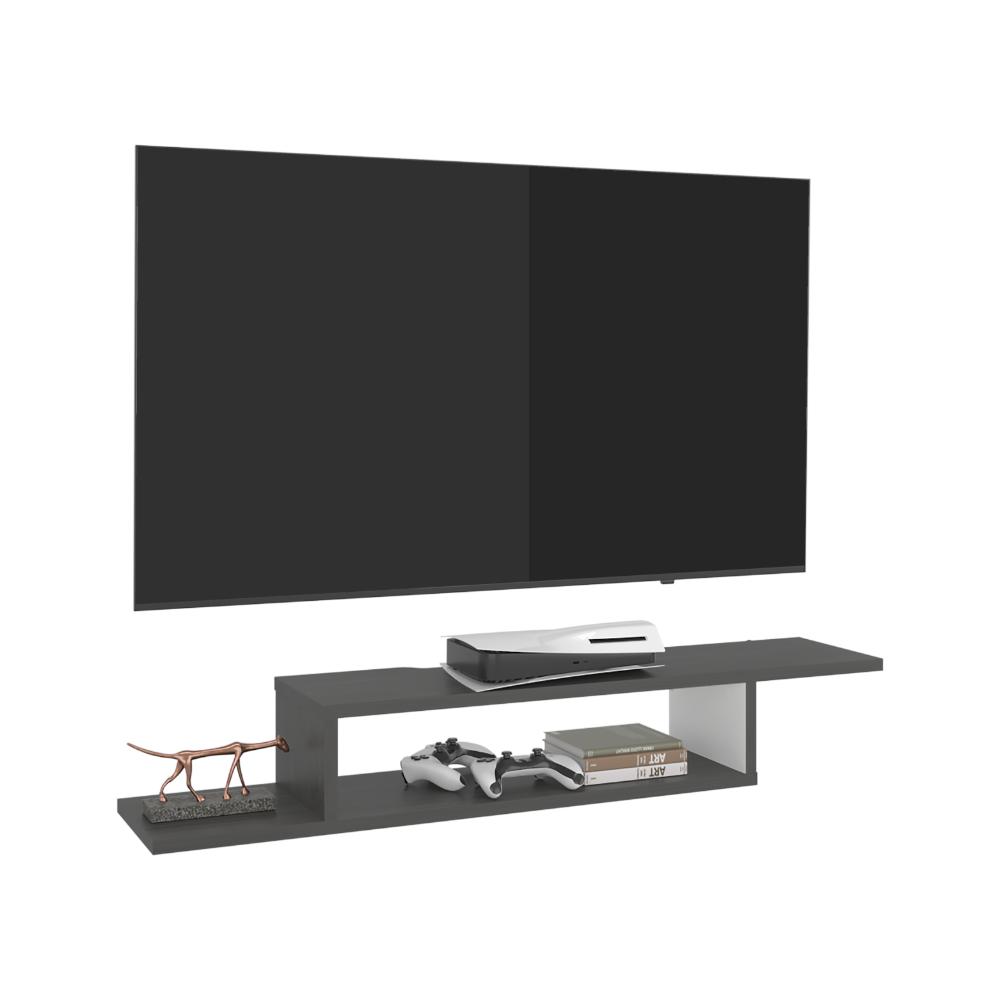 Mesa Para Tv Flotante Dilix, Roble Gris y Blanco, con superficie para objetos decorativos