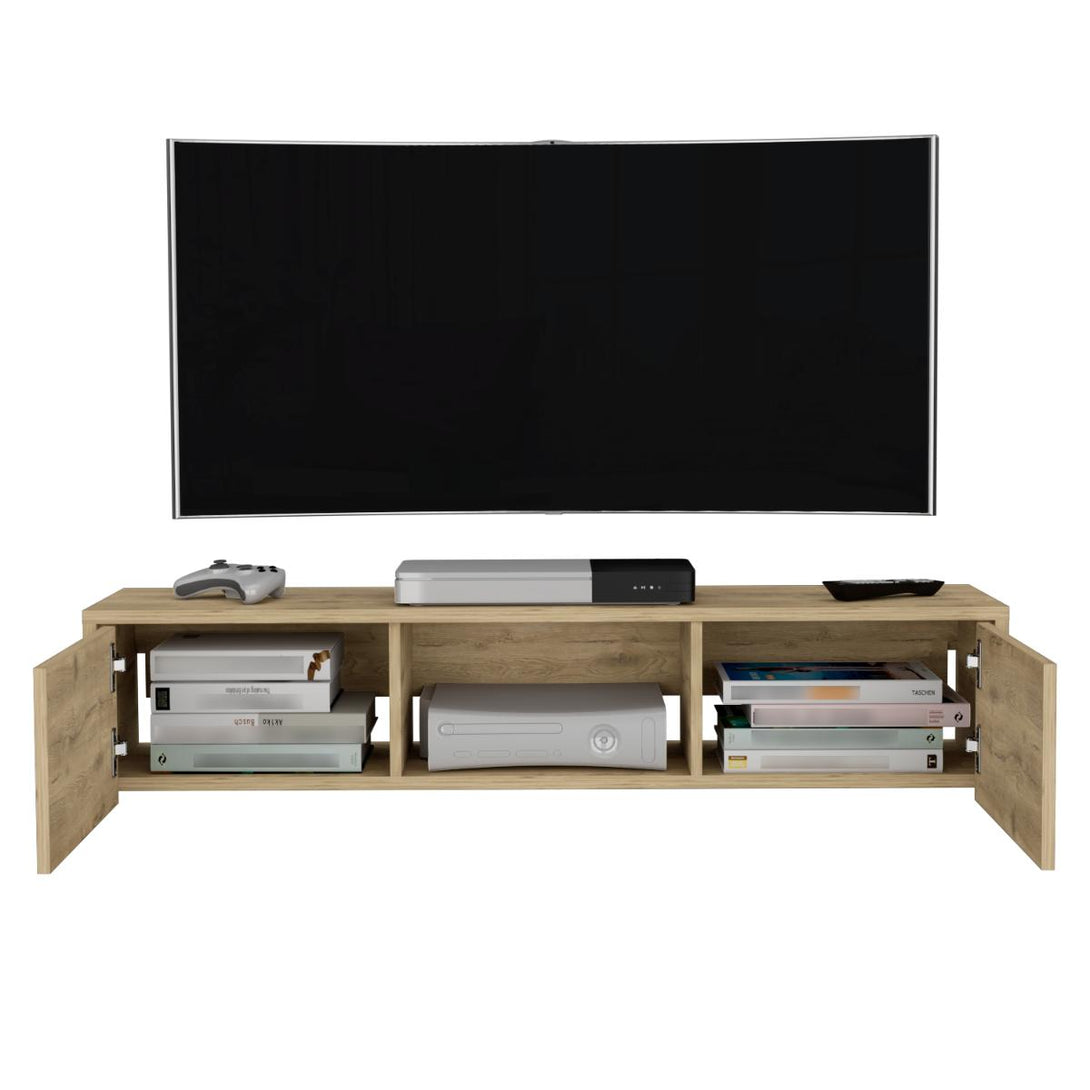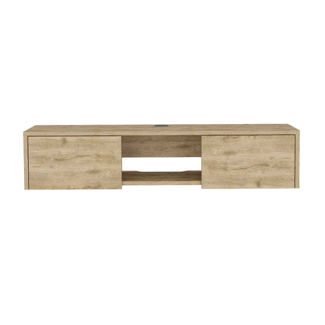 Mesa de TV Flotante, con superficie para objetos decorativos, equipos de audio y video, y dos puertas abatibles