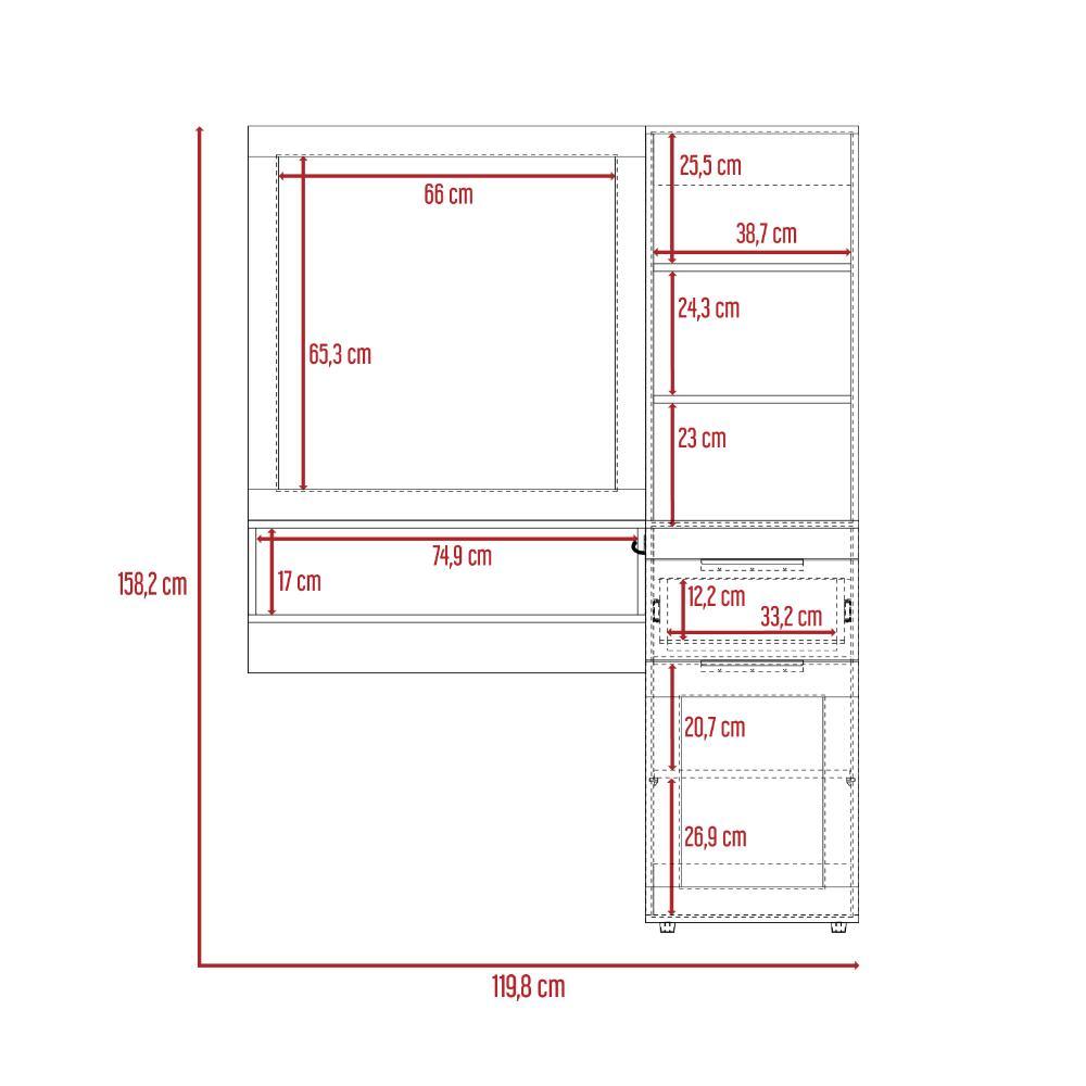 Elaborado en Madera aglomerada MDP, recubierta con láminas melamínicas de excelente calidad, en color Nogal.