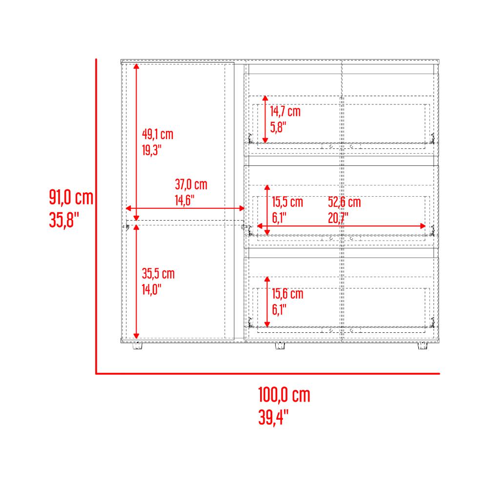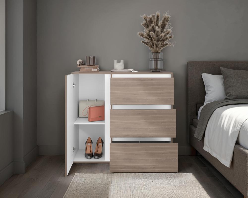 Organizador Niza, Bardolino y Blanco, con tres cajones y gran capacidad de almacenamiento