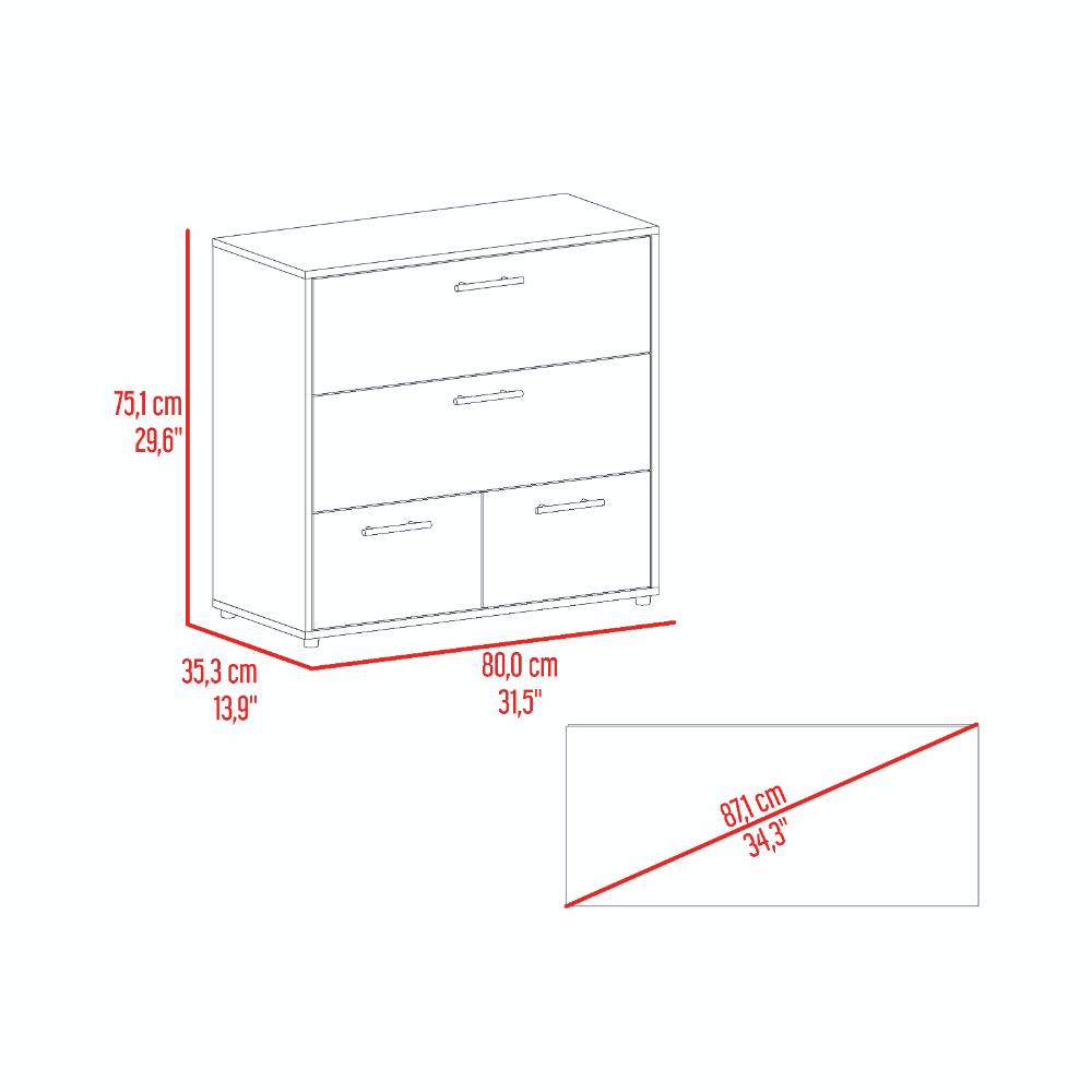 Organizador Sevin, Fresno Europeo y Blanco Duqueza, con cuatro cajones para guardar objetos personales