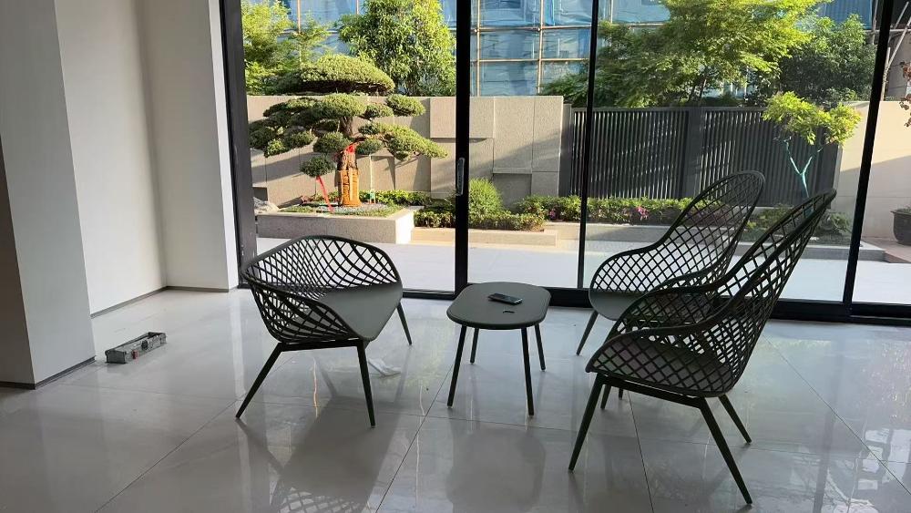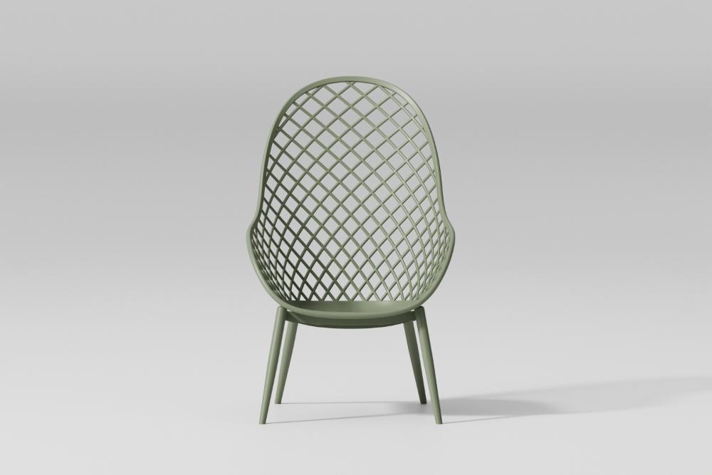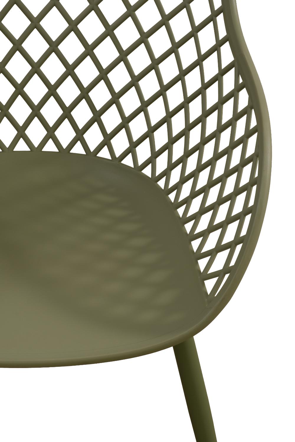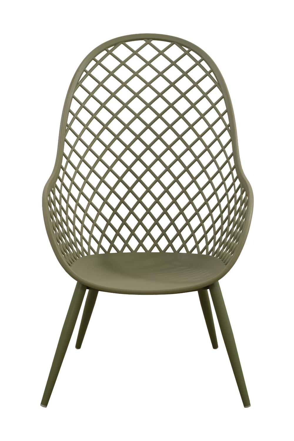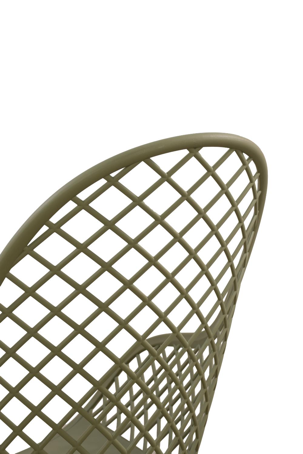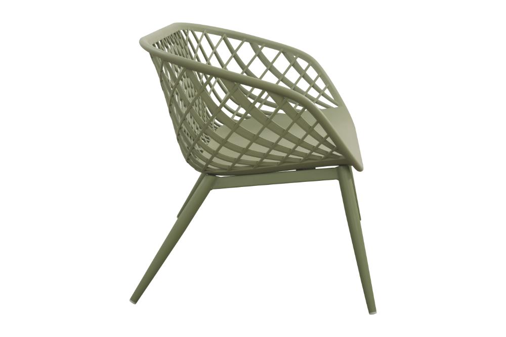 Elaborado en Polipropileno y protección a los rayos UV el set incluye mesa centro, dos sillas y un banco, en Color Verde Olivo