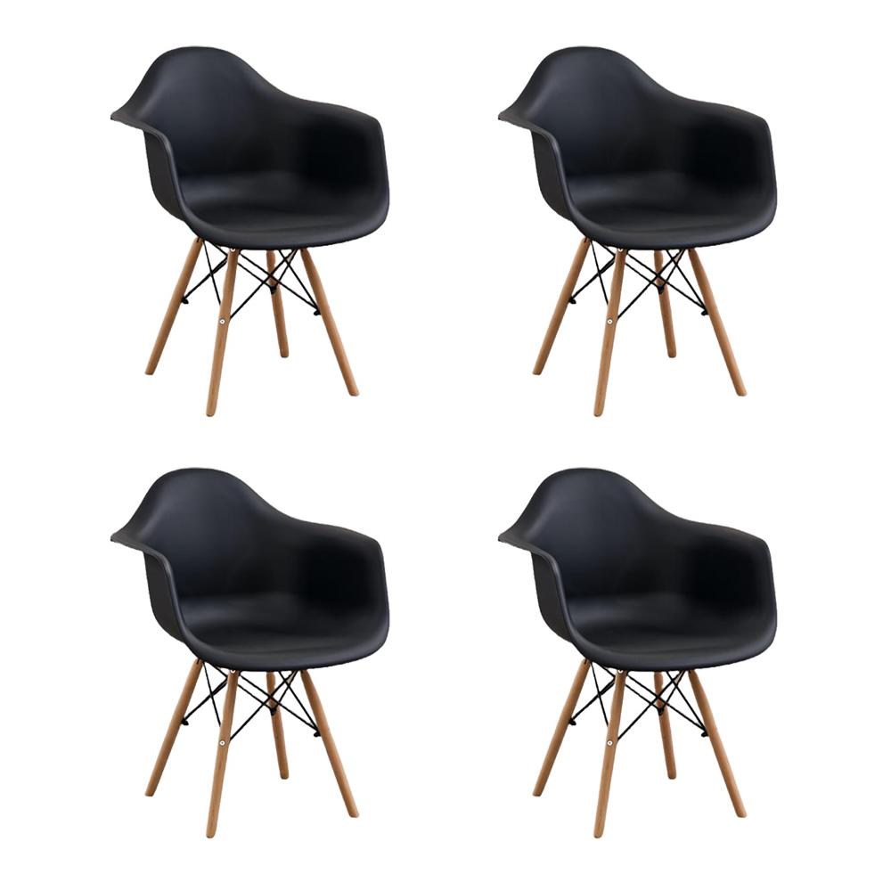 Silla Delia, Color Negro, Con espaldar y patas en Madera X4