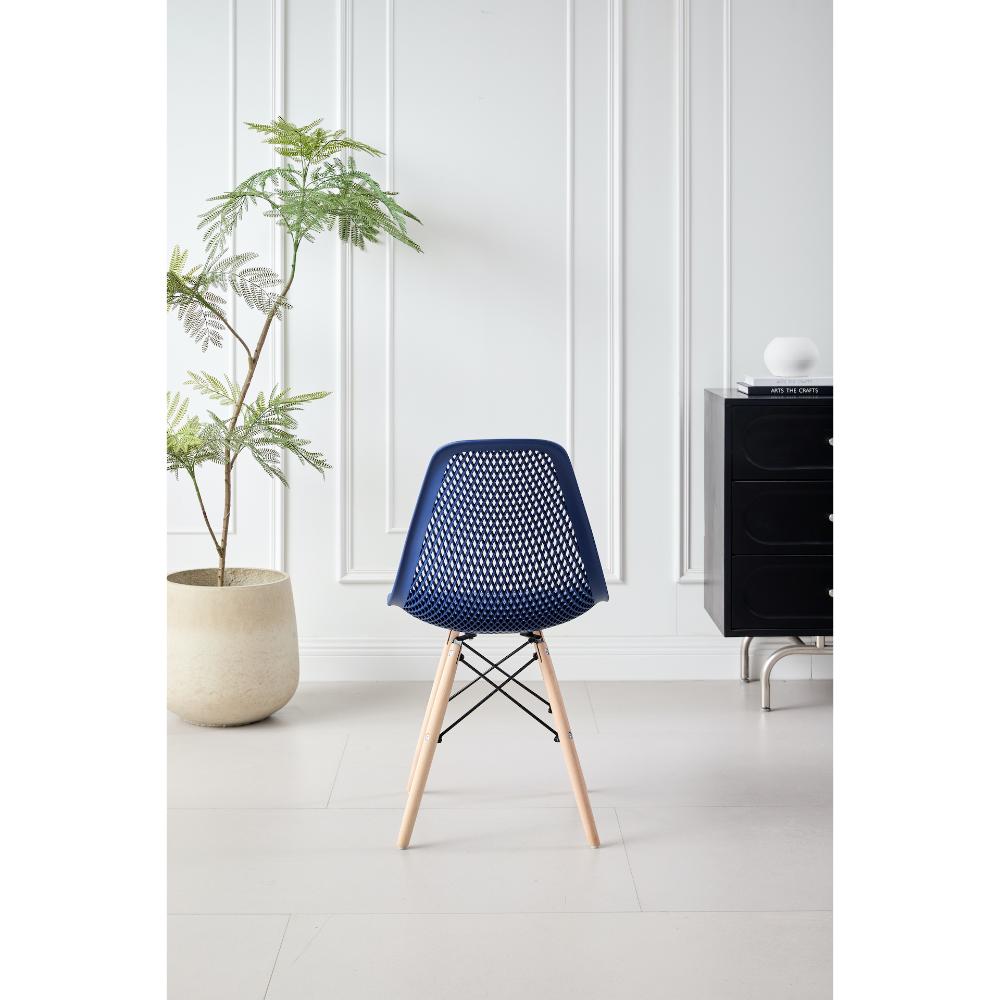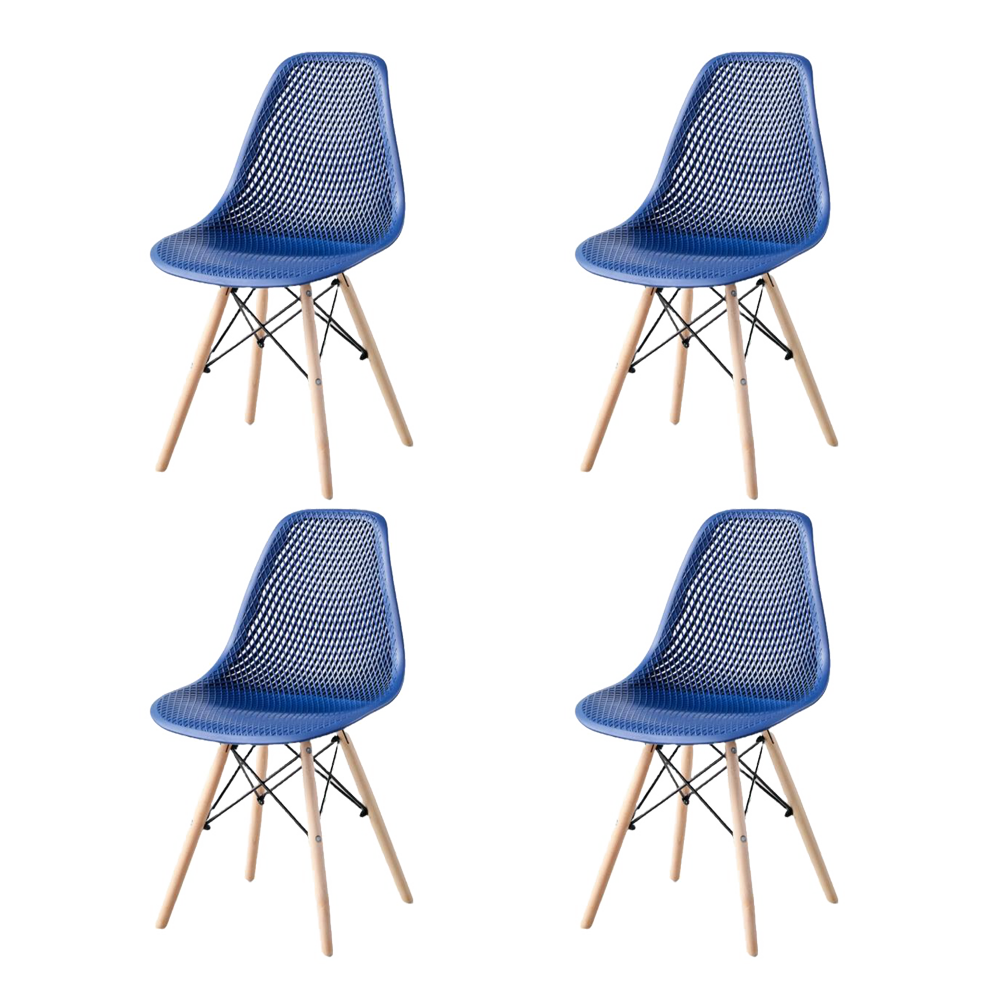 Silla Marcus, Color Azul, Con espaldar y patas en Madera X4