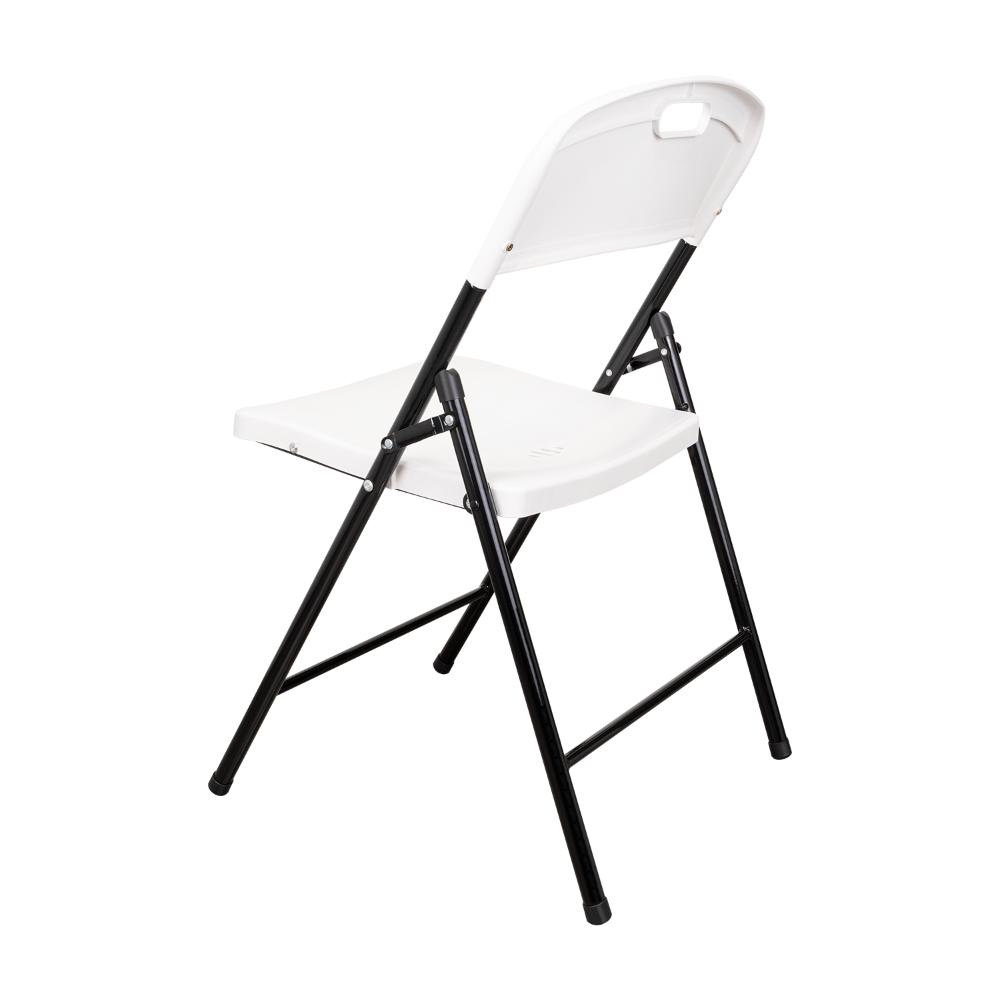 Silla Plegable Dako, Blanco, espaldar y asiento en material plastico y patas metálicas