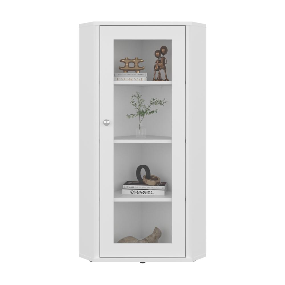 Vitrina Esquinera Genova, Blanco, con una puerta y cuatro entrepaños