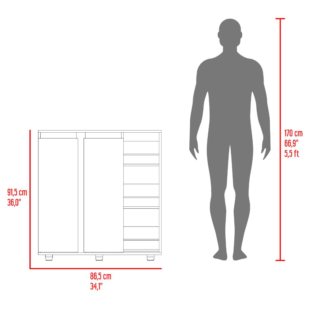 Elaborado en Madera aglomerada MDP, recubierta con láminas melamínicas de excelente calidad, en color Plata Oscuro y Nogal.