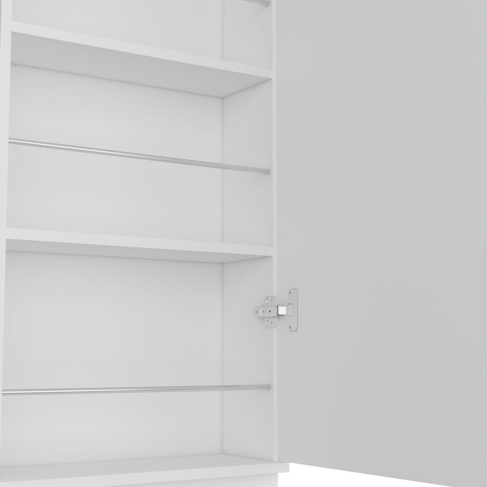 Elaborado en Madera aglomerada MDP, recubierta con láminas melamínicas de excelente calidad, en color Blanco.