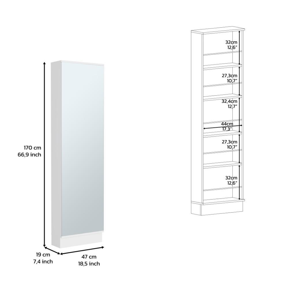 Mueble Auxiliar Zapatero, con espejo frontal, y 5 entrepaños para organizar diferentes zapatos. con capacidad para zapatos hasta talla 41